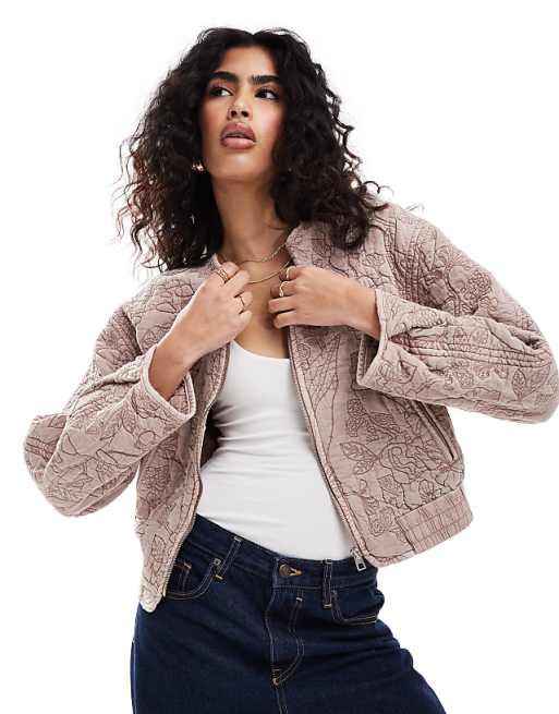 Mango – Steppjacke in Rosa mit Blumenstickerei | ASOS